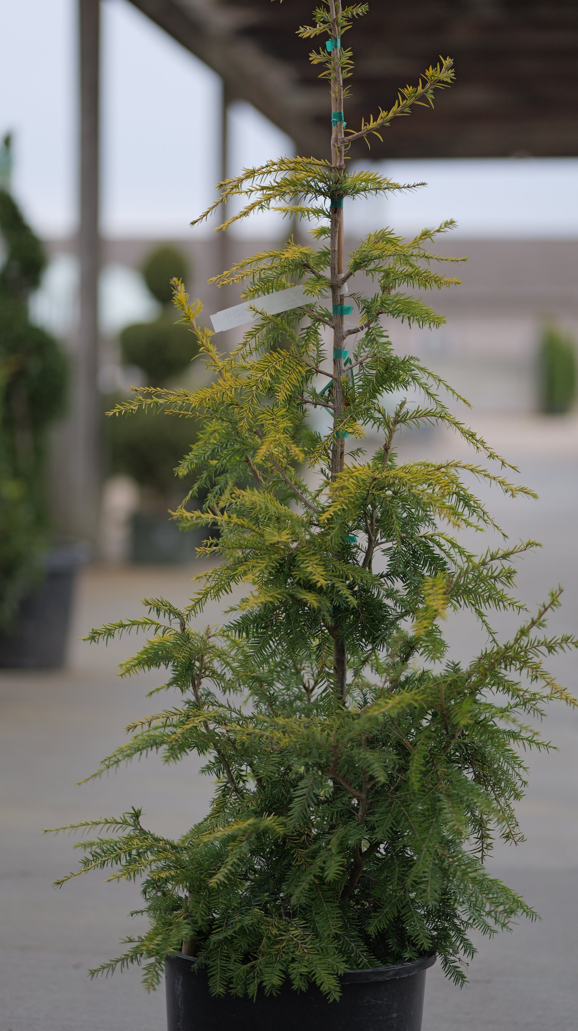 Yellow-gold, soft textured needles offer improved sun tolerance, though some afternoon shade is appreciated. An upright, pyramidal specimen tree with a strong central leader.